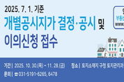 【뉴스라이트 = 조용은 기자】 수원시 권선구는 다가오는 30일에 개별공시지가를 결정·공시하고 10월 30일부터 11월 28일까지 이의신청을 받는다. 이번에 공시되는 개별공시지가 대상 토지는 지난 1월 1일부터 6월 30일까지 토지이동(분할, 합병, 지목변경 등)이 발생한 599필지이고, 감정평가사의 검증과 수원시 부동산가격공시위원회 심의를 통해 결정됐다. 지가열람은 권선구청 토지관리과 및 관할 행정복지센터에서 가능하며, 온라인 열람은 부동산공시가격알리미 홈페이지에서 가능하다. 결정지가에 대해 이의가 있는 토지소유자 및 이해관계인은 11월 28일까지 이의신청서를 권선구청 토지관리과 및 관할 행정복지센터 또는 부동산공시가격알리미 홈페이지에 제출할 수 있다. 이의신청된 필지는 토지특성을 재확인하고 인근 지가와의 균형 등을 고려하여 면밀하게 재조사하며, 감정평가사 검증과 수원시 부동산가격공시위원회 심의를 거쳐 12월 22일에 최종 결정된다.