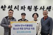 【뉴스라이트 = 박현서 기자】 지난 25일, 안성시자원봉사센터는 머크일렉트로닉머티리얼즈㈜ 임직원 봉사단인 ‘머크 온누리愛클럽’과 함께 관내 학생을 위한 ‘희망장학금’ 전달식을 가졌다. 이번 장학금은 학업에 대한 열의가 높고 성실한 지역 내 학생을 격려하기 위해 마련됐으며, 머크 임직원들이 자발적으로 조성한 후원금을 바탕으로 전달되어 의미를 더했다. 머크 온누리愛클럽은 그동안 안성 지역사회를 위해 다양한 봉사활동과 기부를 이어오며 기업의 사회적 책임을 실천하고 있는 임직원 중심의 봉사단체다. 김동성 센터장은 “어려운 외부 환경에서도 꿈을 향해 정진하는 학생에게 이번 장학금이 큰 힘이 되길 바란다”라며, “매년 잊지 않고 지역 인재 양성을 위해 따뜻한 정성을 모아주시는 머크 온누리愛클럽에 깊은 감사를 드린다”라고 말했다. 머크 온누리愛클럽 정재훈 회장은 “임직원들의 작은 정성이 학생의 소중한 꿈을 지탱하는 마중물이 되길 바란다”라며, “우리 주변의 이웃을 살피고 지역사회와 함께 성장할 수 있는 나눔 활동을 지속적으로 펼치겠다”라고 화답했다. 한편, 안성시자원봉사센터는 다양한 이해관계자의 지