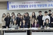 【뉴스라이트 = 조용은 기자】 수원시 영통구는 지난 25일, 영통구청 상황실에서 구청 및 12개 동 민원 담당 공무원을 대상으로 수원가정법원과 함께하는 역량 강화 교육을 실시했다. 이날 특별 초빙된 수원가정법원 박민숙 사무관과 유신임 행정관은 갈수록 복잡하고 다양해지는 가족관계등록사무를 개념부터 관련 법령까지 체계적으로 교육했으며, 업무처리 시 유용한 노하우 공유, 질의응답 등의 시간도 마련했다. 특히 실무에서 자주 접하는 기본적이고 중요한 사례 중심으로 민원 담당자들이 이해하기 쉽게 교육을 통해 실무의 어려움을 해소하고, 신속하고 정확한 업무 처리에 대한 자신감을 높였다. 장수석 영통구청장은“가족관계등록부는 국민의 신분과 정체성을 증명하는 유일한 공적 자료로, 직원들의 전문성 부족이 시민들의 불편으로 이어지지 않도록 수원가정법원과 함께 민원담당 공무원의 역량 강화에 최선을 다하겠다”고 밝혔다. 영통구는 앞으로도 직원들의 전문성과 자신감을 강화하여 수준 높은 민원행정 서비스를 실현해 나갈 계획이다.