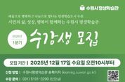 【뉴스라이트 = 조용은 기자】 수원시평생학습관이 12월 17일 오전 10시부터 2026년 1분기 수강생을 모집한다. 1월부터 3월까지 운영되는 1분기 강좌는 ▲첨단미래기술 프로그램 ▲디지털 지식정보 프로그램 ▲생활문화 프로그램 ▲교양 프로그램 ▲인문 프로그램 ▲기관 협력 재능기부 프로그램 ▲거북이공방 프로그램 ▲대상별 맞춤프로그램 ▲시민교육 프로그램 ▲언제든학교 시민기획 프로그램 ▲무지한스승의만남 시민참여기획 프로그램 등 총 11개 과정, 115개 세부 강좌로 구성됐다. 첨단미래 기술 프로그램을 강화했다. 인공지능(AI) 기술에 초점을 둔 첨단미래기술 프로그램, 성균관대학교 지능로봇리빙랩과의 협업을 통한 자율주행 실습, 가상현실(VR)드론 시뮬레이션 체험 등이 있다. 또 글쓰기, 사주명리학, 한글 서예, 현대미술, 명화감상, 뮤지컬 등을 주제로 한 교양 프로그램과 중장년, 시니어, 제2의 인생설계, 청소년 등을 대상으로 하는 대상별 맞춤 프로그램을 마련했다. 수원시는 새빛톡톡 시민 설문조사를 활용해 2026년 강사를 공개 모집했고, ▲생활문화 프로그램 ▲디지털 지식정보 프로그램 ▲대상별 맞춤프로그