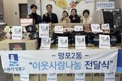 【뉴스라이트 = 조용은 기자】 수원시 영통구 망포2동 행정복지센터는 지난 6일, 버팀병원이 설 명절을 맞아 소외된 이웃을 돕기 위해 100만 원 상당의 컵라면을 기탁했다고 밝혔다. 버팀병원은 진료 활동과 더불어 망포2동 지역사회보장협의체 위원으로 활동하며 지속적인 사회공헌과 나눔 실천에 앞장서고 있다. 이번 전달식에는 태안농협 태장지점(지점장 위종욱)과 서울샤치과도 함께 참여해 햇반과 컵라면 10박스, 곱창김 25봉을 후원하며 나눔의 의미를 더했다. 박준수 버팀병원 대표원장은 “설 명절을 맞아 어려운 이웃들에게 따뜻한 마음을 전하고자 후원을 준비했다”며 “앞으로도 지역사회와 함께 꾸준한 나눔 활동을 이어가겠다”고 말했다. 이용태 망포2동장은 “지역사회보장협의체 위원으로서 나눔 문화 확산에 기여해 주시는 버팀병원과 함께해주신 후원 기관들에 깊이 감사드린다”며 “기탁된 후원 물품이 소외된 이웃들에게 잘 전달돼 따뜻한 명절을 보내는 데 도움이 되길 바란다”고 전했다. 한편, 기탁된 물품은 설 명절을 맞아 관내 홀몸노인과 한부모가정 등 저소득 가구에 전달될 예정이다.