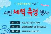 【뉴스라이트 = 박현서 기자】 안성시보건소는 ‘안성 시민의 날’을 맞아 시민의 건강 증진과 올바른 생활 습관 형성을 돕기 위한 ‘시민 체력 측정 행사’를 개최한다고 밝혔다. 이번 행사는 오는 4월 3일 오후 12시부터 4시까지 안성시 여성비전센터 1층 공유오피스에서 진행된다. 현장에서는 체력 측정뿐만 아니라 심뇌혈관 질환 예방, 신체활동, 금연, 구강 관리 등 건강 인식 향상을 위한 다양한 건강증진 부스도 함께 운영될 예정이다. 체력 측정은 1인당 약 30분이 소요되며, 원활한 운영을 위해 오는 3월 27일까지 선착순 80명을 대상으로 사전 접수를 받는다. 신청은 홍보물에 포함된 QR코드 또는 온라인 설문 링크를 통해 할 수 있다. 당일 현장 접수도 가능하지만, 대기 시간이 발생할 수 있어 사전 예약이 권장된다. 상세 측정 절차는 ▲혈압 체크 ▲체격 검사(신장, 체중, 체성분 분석) ▲근력 측정 ▲심폐지구력(65세 이상은 협응력) 측정 순이며, 측정 후에는 결과지 제공과 함께 1:1 맞춤형 상담이 이뤄진다. 단, 안전을 위해 행사 당일 혈압이 고혈압 기준(수축기 160mmHg 또는 이완기 100mmHg 이상)을
