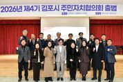 【뉴스라이트 = 이세현 기자】 2026년 제4기 주민자치협의회가 출범하며 새로운 도약을 알렸다. 김포시는 28일 시청 대회의실에서 14개 읍‧면‧동 4기 주민자치회장으로 구성된 주민자치협의회의 첫 정기회의를 개최하고, 본격적인 4기 주민자치회 운영의 시작을 알렸다. 이날 회의는 ▲위촉장 수여 ▲임원선출 ▲정기회의 ▲자체회의 순으로 진행됐으며, 2026년 주민자치협의회를 이끌어갈 임원으로 황도연 회장(장기본동), 조권창 부회장(하성면), 김현숙 감사(양촌읍), 장재용 정책국장(대곶면), 장보람 사무국장(마산동)이 선출 및 선임되며 협의회 구성을 마쳤다. 정기회의에서는 향후 주민자치협의회의 운영 방향을 논의하고 새로운 임기 출범에 맞춰 자치회 일원으로서의 책임과 역할을 되새기는 시간을 가졌다. 이번에 선출된 김포시 황도연 주민자치협의회장은 “4기 주민자치협의회의 첫 출발을 함께해 주신 자치회장들께 감사드린다”며, “주민자치의 새로운 도약을 이끄는 시기인 만큼, 각 자치회장님들과 함께 힘을 모아 김포시 주민자치 발전에 기여하는 협의회를 만들어 가겠다.”고 소감을 밝혔다. 김병수 시장은 “주민자치회는 지역