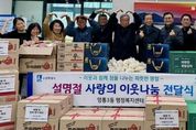 【뉴스라이트 = 조용은 기자】 수원특례시 영통구 영통3동은 지난 11일, 다가오는 설 명절을 맞아 관내 취약계층을 위한 이웃나눔 전달식을 진행했다. 이번 전달식은 설 명절을 맞아 경제적 어려움을 겪는 저소득층과 복지사각지대 이웃들이 따뜻한 명절을 보낼 수 있도록 마련됐다. 후원물품은 햄, 라면, 생필품 등 다양한 품목으로 구성됐으며, 관내 취약계층 200여 세대에 전달될 예정이다. 진성원 영통3동 단체협의회장은 “설 명절을 맞아 여러 기관이 뜻을 모아 지역 이웃들을 위한 나눔에 함께 참여했다. 각 기관의 정성이 모인 후원물품이 어려운 이웃들의 생활에 작은 보탬이 되길 바란다”고 전했다. 김인태 영통3동장은 “여러 기관이 함께해 주신 소중한 후원에 깊이 감사드린다. 전달된 후원물품은 도움이 필요한 이웃들에게 전달해 따뜻한 명절을 보낼 수 있도록 하겠다”고 말했다.