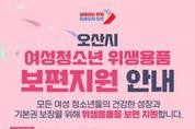 【뉴스라이트 = 조용은 기자】 오산시는 관내 11세부터 18세까지의 여성청소년을 대상으로 '여성청소년 위생용품 보편지원 사업'을 추진한다고 밝혔다. 이번 사업은 여성청소년의 경제적 부담을 완화하고 건강한 성장 환경을 조성하기 위해 생리용품 구입비를 지원하는 사업이다. 다만 여성가족부가 시행하는 기초생활수급자·차상위계층·한부모가족 대상 여성청소년 생리용품 바우처 지원사업과는 중복 지원이 불가하다. 지원 대상은 오산시에 거주하는 11세부터 18세까지의 여성청소년으로, 등록 외국인과 국내거소신고자 등 외국인 청소년도 포함된다. 지원 금액은 1인당 월 1만1,800원, 연 최대 14만2,000원이며 오산시 경기지역화폐 모바일 ‘오색전’으로 지급된다. 지원금은 오산시 내 지역화폐 가맹 편의점인 CU, GS25, 세븐일레븐, 이마트24 등에서 사용할 수 있으며, 배달특급 앱을 통한 온라인 구매도 가능하다. 신청 기간은 2026년 3월 4일부터 예산 소진 시까지이며, 온라인 신청은 3월 4일 오전 10시부터 3월 31일 오후 6시까지 가능하다. 신청은 경기민원24 온라인 신청 또는 주소지 관할 행정복지센터 방문