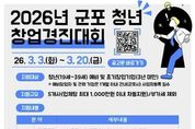 【뉴스라이트 = 이양지 기자】 군포산업진흥원은 지역 내 유망 청년 창업가를 발굴하고 혁신 아이디어의 성공적인 사업화를 지원하기 위해 2026년 군포 청년 창업경진대회 지원사업 참가자를 2026년 3월 3일부터 3월 20일까지 모집한다고 밝혔다. 이번 사업은 창의적인 아이디어와 기술력을 보유한 청년 예비창업자 및 초기 창업기업을 대상으로 우수 창업 아이템을 발굴하고, 단계별 맞춤 지원을 통해 안정적인 시장 진입과 지속 가능한 성장을 돕기 위해 마련됐다. 특히 경진대회를 통해 선발된 우수팀에게는 최대 1천만 원의 사업화 지원금과 전문가 멘토링 등 실질적인 성장 지원 프로그램이 제공될 예정이다. 또한 향후 창업보육센터 입주 신청 시 우대 혜택을 부여해 후속 성장까지 연계 지원할 계획이다. 군포산업진흥원은 이번 사업을 통해 청년 창업 활성화 기반을 더욱 강화하고, 지역 내 창업 생태계 선순환 구조를 구축해 나간다는 방침이다. 아울러 우수 창업기업이 관내에 안정적으로 정착해 지속적으로 성장할 수 있도록 맞춤형 지원을 확대해 나갈 예정이다. 유병직 원장은 “청년 창업은 지역 경제의 미래 성장 동력”이라며,