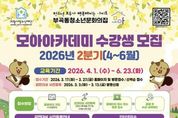 【뉴스라이트 = 이양지 기자】 (재)의왕시청소년재단 부곡동청소년문화의집이 청소년들의 창의성과 실천 역량을 키우는 배움의 장을 조성하기 위해‘2026년 모아아카데미 2분기(4~6월)’ 수강생을 모집한다. 이번 과정은 ▲창의 ▲미디어 ▲문화창작 3개 분야로 구성되어 있으며, 브레인큐브 ·보드게임·웹툰·ITQ 자격증 등 청소년들의 관심을 사로잡을 다양한 프로그램으로 구성됐다. 총 8개 프로그램 13개반이 이번 강좌로 개설되며, 부곡동청소년문화의집은 청소년들이 자신의 흥미와 진로 방향에 맞춰 주도적으로 학습을 선택하고 경험할 수 있도록 프로그램을 체계적으로 구성했다. 아울러, 강좌 특성에 맞춘 맞춤형 운영을 통해 참여 중심의 수업 환경을 마련하고, 청소년들이 스스로 배우고 성장하는 과정을 경험할 수 있도록 했다. 강좌의 신청은 3월 17일부터 3월 27일까지 온라인(홈페이지)로 하거나 방문으로 가능하다. 아울러, 수강료 감면 혜택을 희망하는 청소년은 사전등록이 필요하다. 하반기 감면 사전 등록 기간은 3월 13일까지이며, 최근 3개월 이내 발급된 관련 증빙 서류를 지참해 부곡동청소년문화의집으로