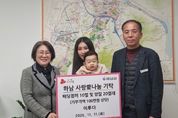 【뉴스라이트 = 김정민 기자】 지난 11일, 박진솔․이연후 부부는 저소득 아동 10가구에게 패딩점퍼 10벌과 양말 20켤레(100만원 상당)를 기탁했다. 박진솔․이연후 부부는 “자녀 이루다의 돌을 맞이하여 의미 있는 일을 하고 싶어 기부를 했다”며 “추운 겨울을 맞아 도움이 필요한 아동들이 따뜻하게 지낼 수 있도록 패딩점퍼와 양말을 마련했고, 아동들이 포근한 온기 속에서 행복한 겨울을 보내길 바란다”고 말했다. 조연식 복지국장은“자녀에게 나눔의 가치를 심어주시는 박진솔․이연후 부부의 모습이 존경스럽다”며 “기탁해주신 패딩점퍼와 양말은 관내 저소득 아동들에게 따뜻한 겨울을 보낼 수 있도록 잘 전달하겠다”고 전했다.