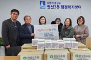 【뉴스라이트 = 조용은 기자】 수원시 권선구 금곡동은 지난 28일 ㈜케이티스포츠로부터 김장 나눔 행사를 위한 후원금 100만원을 전달받았다고 밝혔다. 이번에 기부된 성금은 김치를 구입하는 데에 사용됐으며, 구입한 김장김치는 지역 내 취약계층 가구에 직접 전달됐다. 이호식 대표이사는 “이번 기부를 통해 지역의 어려운 이웃들에게 실질적인 도움이 되길 바란다며 앞으로도 지역사회와 함께하는 다양한 나눔 활동을 지속적으로 이어가겠다”라고 말했다. 장성임 금곡동장은 “㈜케이티스포츠에서 김장 나눔을 위해 후원금을 전달해 주셔서 감사드린다며, 이번 후원으로 마련된 김장김치가 취약계층의 겨울나기에 큰 도움이 될 것”이라며 “앞으로도 주민들이 따뜻한 겨울을 보낼 수 있도록 지원을 이어가겠다”라고 전했다.