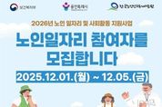 【뉴스라이트 = 박현서 기자】 용인특례시는 12월 1일부터 5일까지 ‘2026년 노인 일자리 및 사회활동 지원사업’ 참여자를 모집한다. 시는 어르신 일자리사업에 269억원을 투입해 5884명의 일자리를 마련했다. 내년 노인일자리 사업은 4개 유형 101개 사업으로 ▲노인공익활동사업 3413명(월 30시간 활동·29만원 지급) ▲노인역량활용사업 1626명(월 60시간 활동·63만 4000원 지급) ▲공동체사업 615명(근무시간과 급여는 근로계약에 따름) ▲취업지원(취업알선형)230명(근무시간과 급여는 근로계약에 따름)을 모집한다. 노인공익활동사업의 대상은 65세 이상 어르신 중 기초연금수급자나 직역연금수급자다. 노인역량활용사업은 65세 이상(일부 사업은 60세 이상)의 어르신이며, 공동체사업단 및 취업지원(취업알선형)은 60세 이상의 어르신이 참여할 수 있다. 다만 국민기초생활보장법에 따른 ▲생계급여 수급자 ▲건강보험 직장가입자 ▲장기요양보험 등급 판정자 ▲다른 기관의 일자리사업 참여자는 신청 대상에서 제외된다. 사업에 참여를 희망하는 어르신은 신분증과 3개월 이내에 발급한 주민등록등본