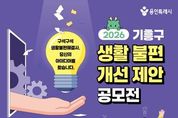 【뉴스라이트 = 박현서 기자】 용인특례시 기흥구는 오는 6일부터 5월 4일까지 ‘2026 기흥구 생활불편개선 제안 공모전’을 개최한다. 이번 공모전은 일상에서 시민이 직접 체감하는 불편사항을 발굴하고, 이를 개선할 수 있는 다양한 방안을 모색하고자 마련됐다. 주제는 일상생활에서 체감하는 생활 불편 개선 아이디어다. 시설·환경 등 각종 생활 불편 사항이나 비효율적인 행정이나 규제 등 다양한 분야의 의견을 받는다. 생활 불편에 관심 있는 누구나 참여할 수 있다. 시 누리집 ‘용인소식’의 ‘고시공고’ 또는 기흥구 누리집 ‘참여광장’의 ‘기흥소식’에서 서식을 내려받아 작성하면 된다. 작성한 제안은 방문‧우편(기흥구 관곡로 95 기흥구청 별관 2층 자치행정과 기획감사팀)으로 내면 된다. 전자우편으로도 제출할 수 있다. 부서 검토와 제안공모심사위원회 검토를 거쳐 최종 선정된 제안은 시상금(최대 100만 원)이 지급된다. 또 관련 부서 검토 등을 거쳐 행정에 반영하거나 실효성 있는 정책으로 이어질 수 있도록 추진할 방침이다. 자세한 사항은 시 또는 구 누리집에서