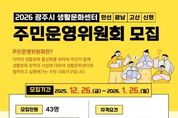 【뉴스라이트 = 김정민 기자】 (재)광주시문화재단은 광주시 생활문화센터(만선·광남·고산·신현)에서 2026년에 활동할 주민운영위원회 위원을 통합 공개 모집한다고 밝혔다. 광주시문화재단은 2023년도 만선·광남 생활문화센터를 개관하고 주민운영위원회를 구성하고 운영해 왔다. 이번 모집은 작년 말 임기 만료와 개관으로 인하여 신규 모집이 필요한 광남·고산·신현 센터와 충원이 필요한 만선 센터가 함께 모집한다. 총 43명 구성을 계획하고 있으며, 광남·고산·신현 3개 센터는 각 12명, 만선 센터는 25년도 연임 위원을 제외한 7명을 충원한다. 참여 자격은 공고 모집일 기준 만 19세 이상으로 ▲ 관내 주민등록이 되어 있는 사람 ▲관내 소재 직장인 및 단체 종사자 중 하나에 해당하는 시민은 누구나 신청할 수 있다. 이전에 주민운영위원으로 활동했던 시민도 지원할 수 있으나, 신규 위원을 우선 모집한다. 선정된 위원은 2026년 2월부터 1년간 활동하며 1회 연임할 수 있다. 주민운영위원회는 생활문화센터의 지속 가능한 발전을 도모하기 위해 주민이 직접 생활문화 정책을 제안하고 실행하는 자치 대표기구이다. ‘우리 동네 문