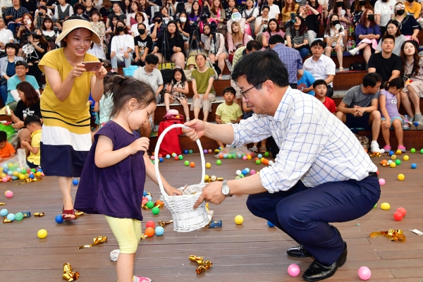 에어바운스, 물총놀이 등 시원한 여름 물놀이 거리가 가득한 ‘놀이존’에는 삼삼오오 모여든 아이들로 쉴 새 없이 붐볐다.
