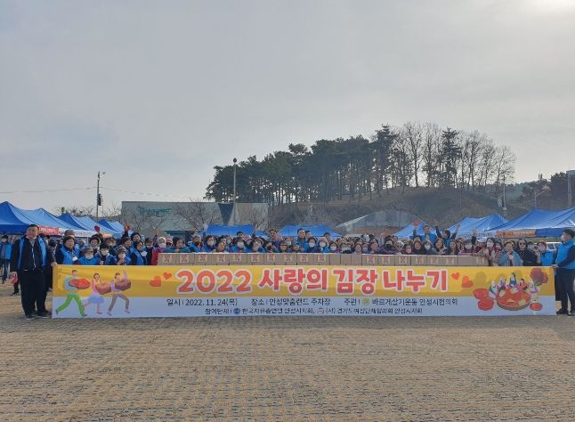 사랑의 김장나누기 행사는 안성시 공모사업으로, 바르게살기운동 안성시협의회가 주관하고 한국자유총연맹 안성시지회, 안성시여성단체협의회 등이 참여한 가운데 임병주 안성시 부시장, 안정렬 안성시의회 의장, 3개 단체 회원 등 총 100여 명이 모여 사랑의 손길을 전했다.