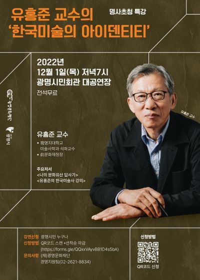 【뉴스라이트 = 박현서 기자】 (재)광명문화재단은 12월 1일 저녁7시 광명시민회관 대공연장에서 유홍준 교수를 초청해 특강을 개최한다.