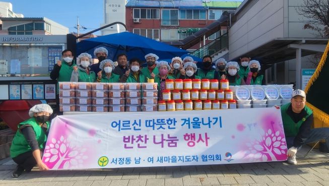 서정동 새마을 남·여지도자회는 지난 16, 17일에 ‘사랑의 김장담가주기’ 행사를 통해 관내 103가구에 김장김치를 전달하는 등 지역사회 나눔활동을 지속적으로 해나가고 있으며, 이번에는 ‘사랑의 반찬나눔행사’로 다가오는 겨울을 대비하여 어르신과 불우이웃을 위해 유자청, 제육볶음, 깍두기 등을 준비하여 관내 100여 가구의 취약계층에 전달했다.