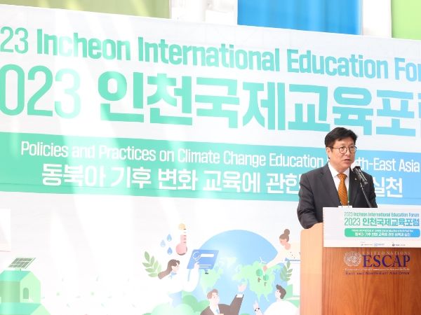 개회식은 이미영 동아시아국제교육원장의 개회 선언을 시작으로 간볼드 바산자브 유엔 에스캅 동북아지역사무소장의 환영사, 신충식 인천광역시의회 교육위원장의 축사, 도성훈 교육감과 헨리 곤잘레스 녹색기후기금(GCF) 부사무총장의 기조 발표순으로 진행했다.