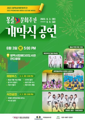 【뉴스라이트 = 박현서 기자】 2023 평택세계문화주간: 몽골문화주간이 오는 6월 3일 열리는 개막식을 시작으로 6월 9일까지 7일간 진행된다.