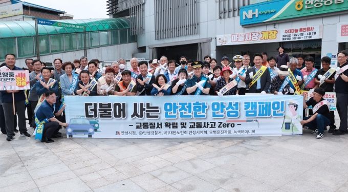 【뉴스라이트 = 박현서 기자】 안성시는 안성시의 최근 3년간 교통사고 사망사고 유형을 파악. 분석한 결과 어르신(68%), 보행자(43%)로 사망사고 비율이 높아 보행자 및 어르신(고령자) 중심으로 무단횡단 및 교통법규 준수를 집중 홍보하고자 어르신들의 활동이 많은 안성장날(6월7일) 인지사거리~석정삼거리 구간에서 안성시청, 안성경찰서, 안성녹색어머니회, 안성모범운전자회, 대한노인회 안성시지회 등 각 기관 관계자들과 함께 『더불어 사는 안전한 안성』(교통질서 확립 및 교통사고 Zero) 캠페인을 진행했다.
