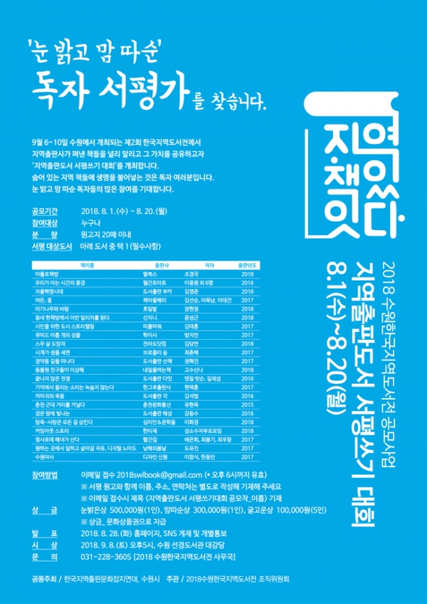 한국지역출판문화잡지연대의 추천을 받아 선정된 22권의 도서 중 한 권을 선택해 서평을 써 공모하면 된다.