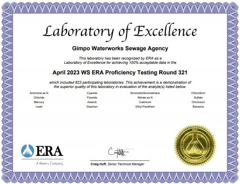 【뉴스라이트 = 이세현 기자】 김포시 ‘맑은물사업소 먹는물검사기관(소장 박정우)’은 2023년 먹는물 분야 국제숙련도 시험에 참가해 ‘우수 분석기관(Laboratory of Excellence) 인증’을 받았다.