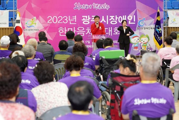 【뉴스라이트 = 김정민 기자】 광주시는 17일 장애인들의 축제인 ‘2023 광주시 장애인 한마음체육대회’를 광주시민체육관에서 성황리에 개최했다. 광주시장애인체육회 주관으로 열린 이번 대회에는 광주시 장애인단체 소속 300여명의 선수를 비롯해 임원, 자원봉사자 등 400여명이 참가했다.
