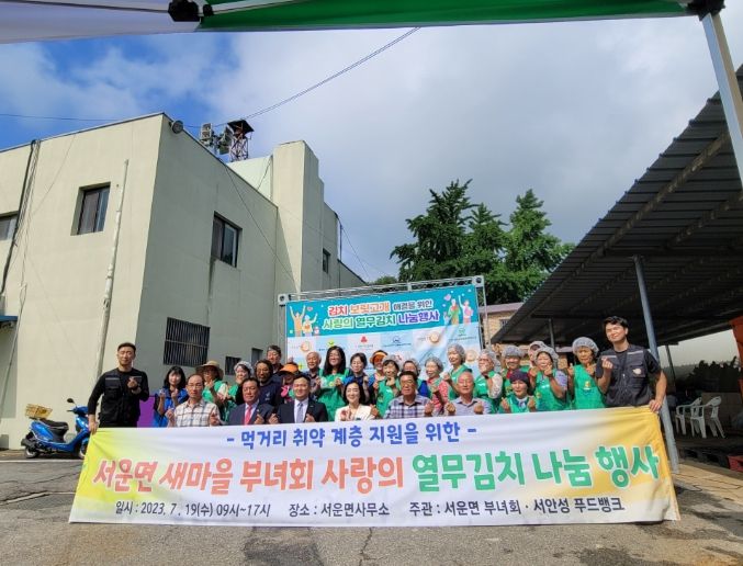 【뉴스라이트 = 박현서 기자】 서운면 부녀회에서는 서안성푸드뱅크와 함께 서운면사무소에서 지난 7월 19일 김치보릿고개 해결을 위한 사랑의 열무김치 나눔 행사를 가졌다.