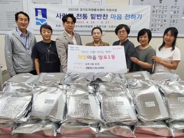 【뉴스라이트 = 조용은 기자】 수원시 영통구는 생활개선수원시연합회에서 7일 추석을 맞아 어려운 이웃에게 도움을 주고 싶다며 직접 빚은 송편과 식혜 40인분을 망포1동 행정복지센터에 기부했다고 밝혔다.