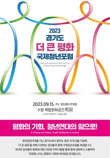 이번 청년국제포럼은 경기도가 추구하는 ‘더 큰 평화’에 대해 세계 청년들과 소통하며 연대·협력해 가는 국제교류 행사로 10개국 30여 명의 청년들이 참가할 예정이다.