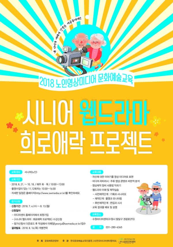 시니어 계층의 미디어 활용을 돕기 위한 ‘시니어 웹드라마’는 문화체육관광부가 주최하고 한국문화예술교육진흥원, (사)전국미디어센터협의회와 공동 주관한다.