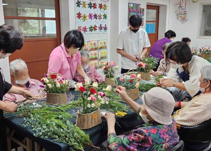 보조강사로 참여한 A요양보호사는 “어르신들이 직접 생화를 만지고 꽃향기를 맡으며 꽃바구니를 즐겁게 만드는 모습을 보니 뿌듯하다. 요양보호사가 아닌 보조강사로 참여해 의미 있는 경험이었다”고 전했다.