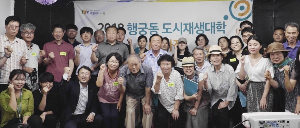 【뉴스라이트】 수원시지속가능도시재단은 7일 행궁동 도시재생현장지원센터에서 ‘2018 행궁동 도시재생대학 기본과정’을 마무리하며 수료식을 열었다.
