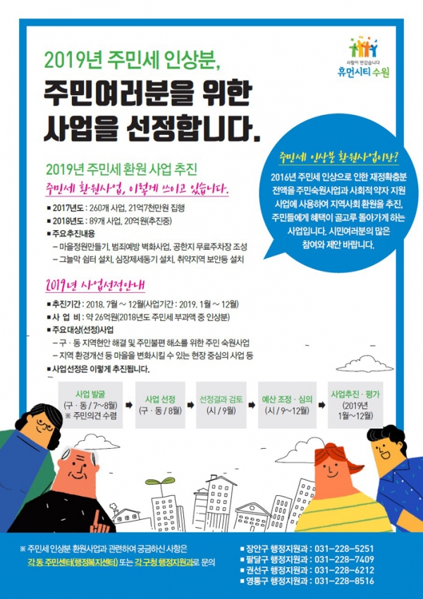 【뉴스라이트】 수원시가 2019년 추진할 ‘주민세 인상분 환원 사업’을 이달 말까지 발굴한다.