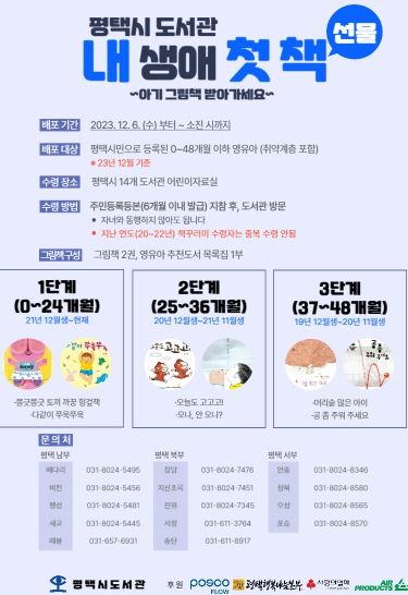 이번 ‘내 생애 첫 책’ 선물은 에어프로덕츠코리아㈜의 도서관 발전 기금, 포스코플로우의 도서 후원, 사랑의 열매와 평택시행복나눔본부의 협력으로 제공한다.
