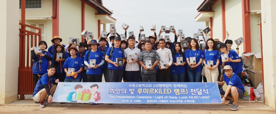 특히, 이번 봉사단에는 수원고등학교 김병철 교장선생님과 이종찬 학생이 학교 대표로 참가하여 수원고등학교 학생들이 “수원마을 희망의 빛 전달사업”을 통해 기부하는 루미르 K(LED 램프) 88개를 수원마을 학생들에게 직접 전달한다.