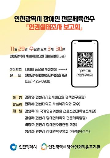【뉴스라이트 = 이세현 기자】 인천시사회서비스원(원장‧황흥구) 인천장애인권익옹호기관은 오는 29일 ‘인천시 장애인 전문체육선수 인권실태조사 보고회’를 연다고 27일 밝혔다.