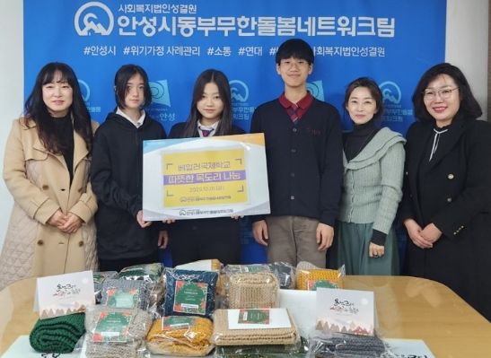 【뉴스라이트 = 박현서 기자】 안성시 동부무한돌봄네트워크팀은 지난 1일 베일러 국제학교 학생들이 직접 만든 목도리를 전달받았다고 밝혔다.