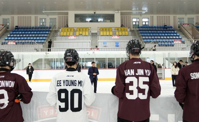【뉴스라이트 = 김정민 기자】 신상진 성남시장은 16일 오전 10시 30분 탄천종합운동장 빙상장을 방문해 훈련 중인 분당중학교 아이스하키부를 격려했다.