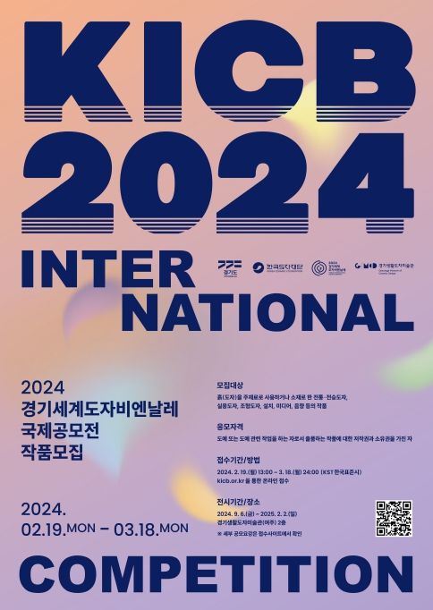 【뉴스라이트 = 조용은 기자】 한국도자재단이 ‘2024 경기세계도자비엔날레(KICB, Korean International Ceramic Biennale) 국제공모전’ 공모 요강을 공식 발표하고 오는 3월까지 온라인 접수에 나선다.