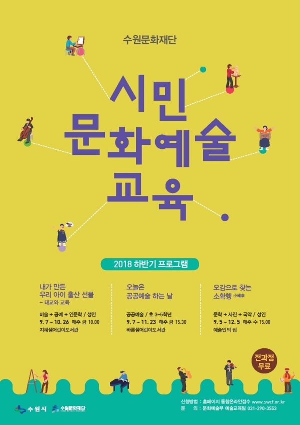 【뉴스라이트】 수원문화재단(대표이사 박흥식)이 2018 하반기 시민문화예술교육 프로그램의 참여자를 모집한다.