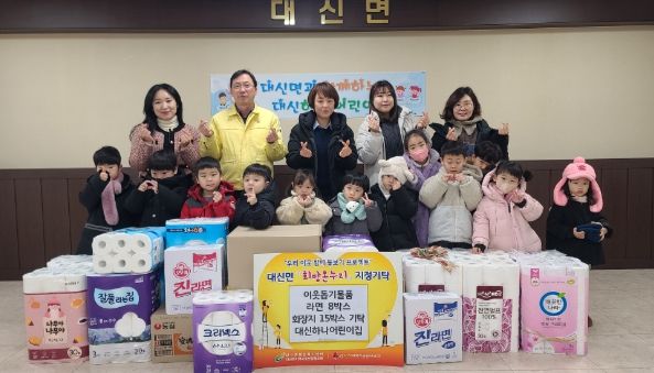 한편, 장홍기 대신면장은 “어려운 이웃을 위해 따뜻한 마음을 보내주신 아이들과 부모님, 원장님께 감사드린다”라며, “특히 아이들의 작고 소중한 마음과 물품이 더욱 의미있고 소중하게 사용될 수 있도록 최선을 다하겠다”라고 전했다.