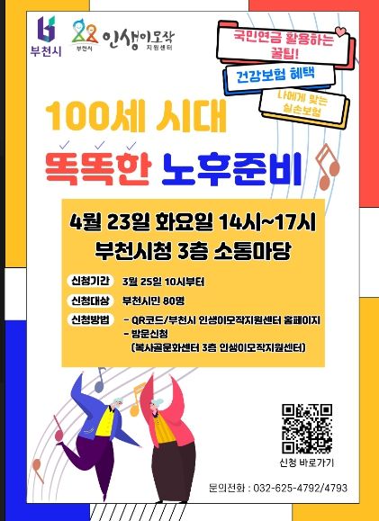 이번 특강은 연령에 제한을 두지 않아 부천시민이라면 누구나 수강할 수 있다. 사회초년생도 연금 및 보험 활용법에 대해 알고 안정적인 노후를 준비할 수 있도록 도울 예정이다.