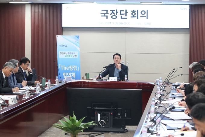 【뉴스라이트 = 조용은 기자】 정명근 화성시장이 26일 시청 상황실에서 열린 ‘실천하는 청렴문화, 클린화성 구현’을 위한 2024년도 제1회 ‘더 청렴’ 협의체 회의를 주재했다.