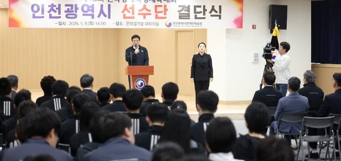 결단식에는 학생선수단과 보호자 등 200여 명과 유정복 인천시장, 김유곤 인천시의회 문화복지위원회 부위원장 등이 함께 했다.
