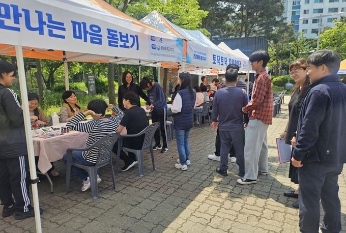 건강 검진(혈압, 혈당, 치매, 우울증, 금연, 금주 등)을 비롯해 다양한 체험부스(아로마 심리치료, 안마봉 만들기, 단백질 쉐이크)와 돌봄에스오에스(SOS) 복지상담 부스가 마련돼 어르신들이 큰 호응을 보였다.