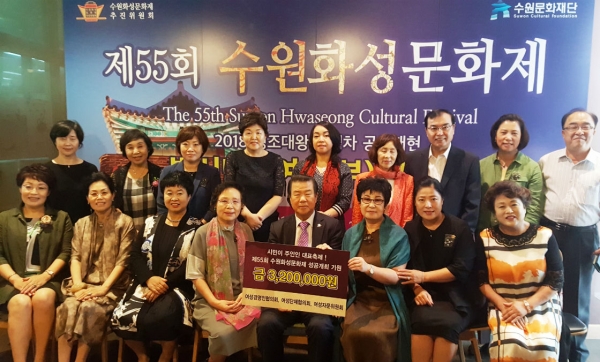 【뉴스라이트】 수원시 3개 여성단체(여성경영인협의회·여성단체협의회·여성자문위원회)가 수원화성문화제추진위원회에 기부금 320만 원을 전달하며 제55회 수원화성문화제 범시민 참여(기부) 캠페인에 참여했다.