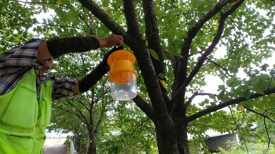 공원녹지사업소는 이달 말까지 관내 왕벚나무 가로수 3279그루에 포획기를 설치하고, 유인한 수컷 유리나방을 10월 초 제거할 계획이다.