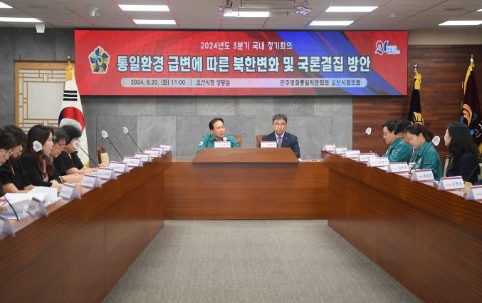【뉴스라이트 = 조용은 기자】 민주평화통일자문회의 오산시협의회는 20일 오산시청 상황실에서 2024년 3분기 정기회의 및 통일의견수렴 회의를 개최했다.