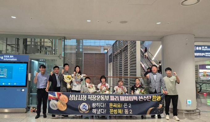 【뉴스라이트 = 김정민 기자】 성남시는 10일 오후 인천국제공항에서 제17회 파리 패럴림픽에서 우수한 성적을 거둔 성남시청 직장운동부 장애인탁구팀 소속 윤지유, 문성혜 선수의 귀국을 환영했다.