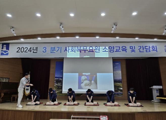1부에서는 ‘일상생활 속에서 일어날 수 있는 응급상황에 대한 대처능력 키우기’라는 주제로 소양교육을 실시하였고, 2부에서는 사회복무요원들의 애로사항 및 현장 의견을 청취하는 시간을 가졌다.